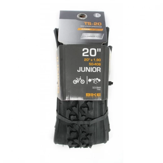Résistant et performant, le pneu Junior 20’’ de Bike Original est un modèle tout terrain équipé d’une bande de roulement avec des crampons et des tringles souples.