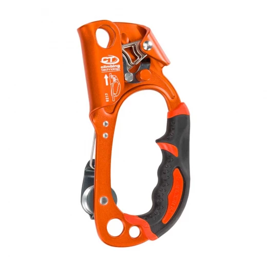 La poignée surmoulée ergonomique de ce modèle Climbing Technology offre une prise en main idéale lors des remontées à une ou deux mains. L’ergot de calage pour l’index et la zone d’appui inférieure de la poignée assurent une excellente préhension afin d’éviter à la main de glisser. Le design de la poignée apporte également une plus grande efficacité lors des tractions à deux mains durant les travaux en hauteur. La poignée Quick Roll s’utilise en combinaison avec un descendeur auto-freinant pour remonter sur la corde de travail.