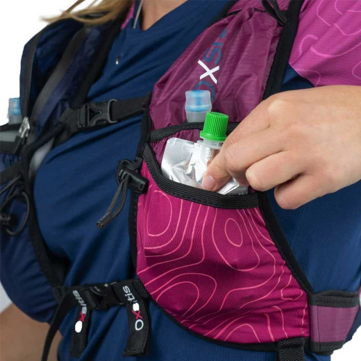 Les poches à l’avant de ce modèle Oxsitis sont placées stratégiquement. Elles permettent de garder à portée de main vos accessoires indispensables comme la casquette, le tour de cou, le smartphone et les en-cas énergétiques. Les poches pour les 2 flasques souples de 500ml (livrées avec le sac à dos) sont disposées de chaque côté du harnais. Le modèle Pulse 12 Ultra W intègre aussi une poche zippée pour garder votre téléphone portable sous la main et un porte-bâtons Easy Fix Pole Control sans oublier le sifflet de survie et le porte-dossard aimanté.