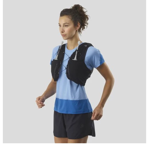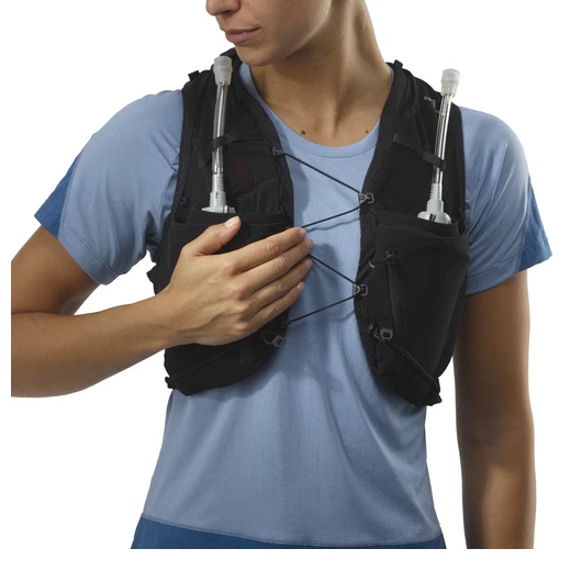 Pensée pour être portée par des femmes, la construction SensiFit™ de ce sac possède des épaules plus étroites, une forme raccourcie, et un ajustement confortable au niveau de la poitrine avec des bretelles incurvées semblables à la forme d'une brassière. Le système de fermeture avec sangles de poitrine permet quant à lui un ajustement parfait à votre morphologie ainsi qu'une répartition idéale des charges, pour éviter tout frottement ou ballotement qui pourrait vous gêner sur une course de plusieurs heures. Les deux flasques intégrées viennent quant à elle se positionner sous la poitrine pour un maximum de confort, et vous permettent de vous hydrater sans effort de façon régulière. Elles restent bien équilibrées pendant que vous courez en évitant tout ballotement, peu importe leur niveau de remplissage. Notez que ce sac Salomon est également compatible avec une poche à eau.