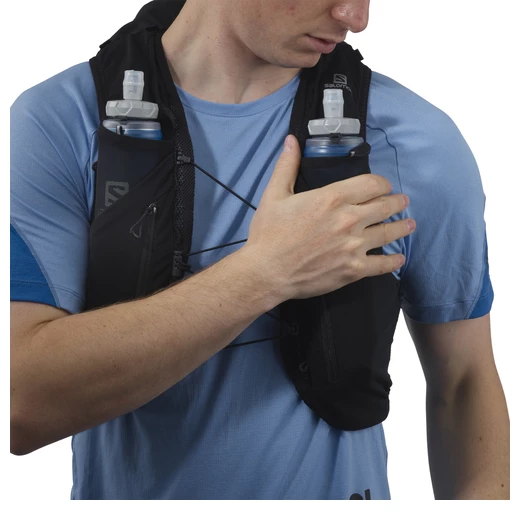 La construction SensiFit™ optimisée et le système de fermeture avec sangles de poitrine permettent un ajustement parfait à votre morphologie ainsi qu'une répartition idéale des charges, pour éviter tout frottement ou ballotement qui pourrait vous gêner sur une course de plusieurs heures. Les deux flasques intégrées vous permettent quant à elle de vous hydrater sans effort de façon régulière, et elles restent bien équilibrées pendant que vous courez en évitant tout ballotement, peu importe leur niveau de remplissage. Notez que ce sac Salomon est également compatible avec une poche à eau.