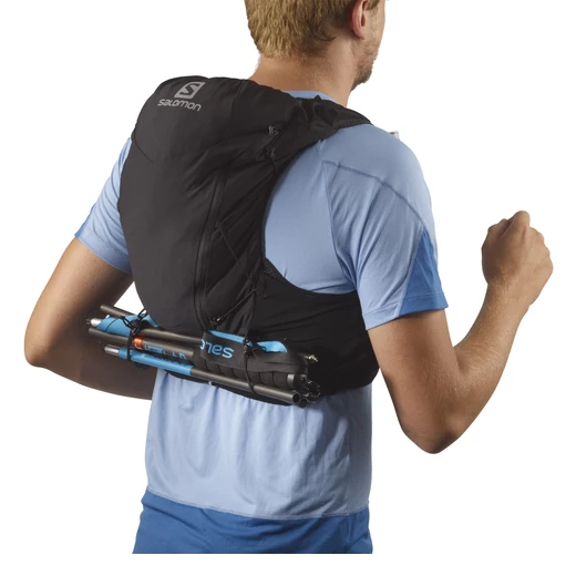 Très bien accesoirisé, le Adv Skin 12 Set Black Ebony possède de nombreuses poches qui vous permettront d'organiser votre matériel au mieux, et d'accéder très facilement à la plupart de vos affaires sans avoir à l'enlever. Vous pourrez également accrocher votre paire de bâtons de multiples manières, que ce soit à l'avant ou à l'arrière du sac, ou encore dans un carquois Salomon Custom Quiver vendu séparément.