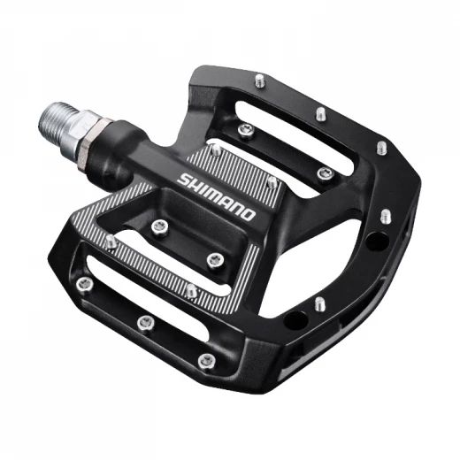 Résistante et durable, la PD-GR500 de Shimano est une pédale plate avec un corps en aluminium et un axe en acier.